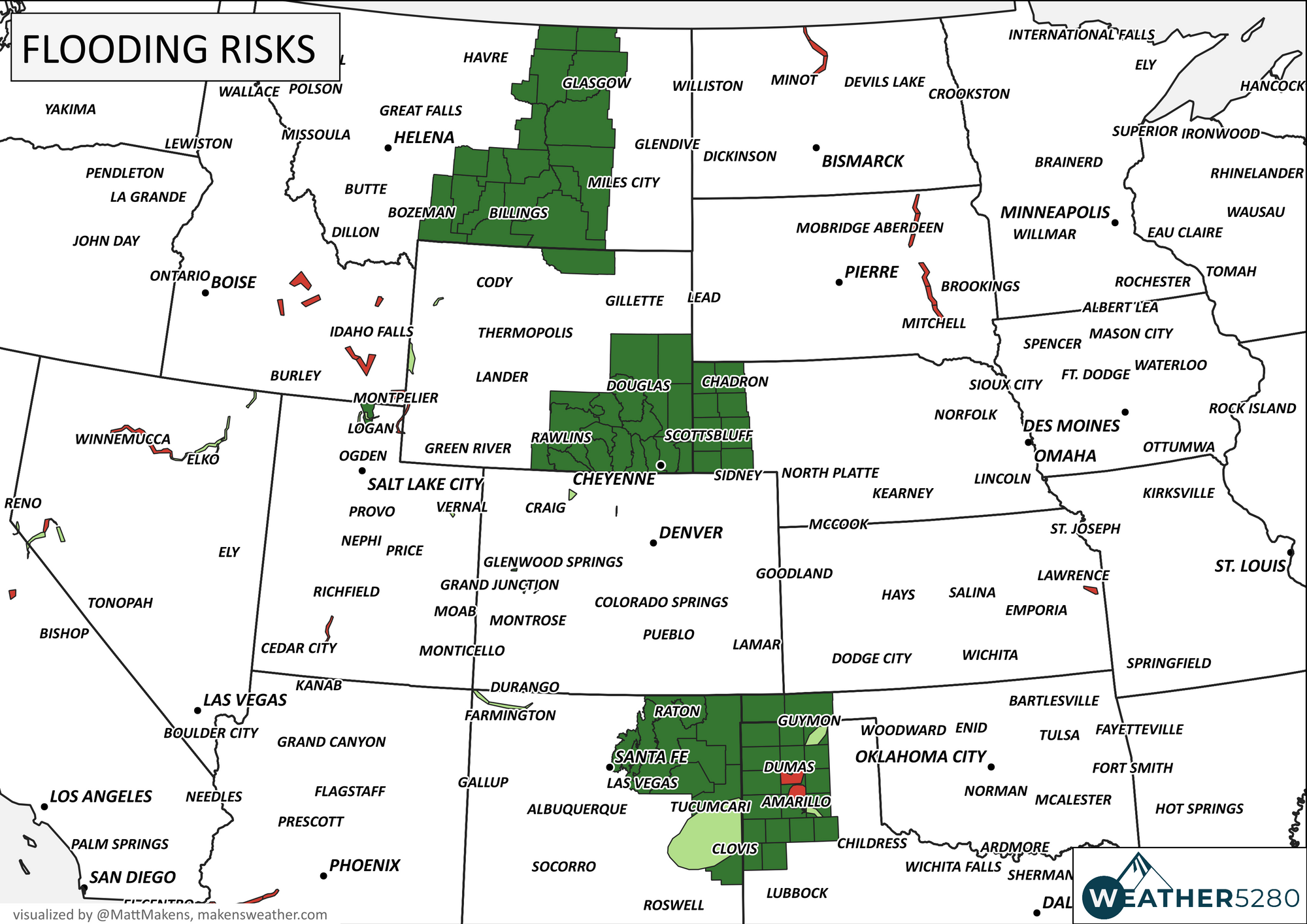 The majority of these showers and storms will produce light to moderate rain with lighter wind gusts and perhaps small hail. There will be a minority of storms that will be stronger with heavier rain, hail, and stronger wind gusts. Given the multiple-day chances and potential for some stronger storms, isolated flooding is possible. The risk of flooding, as of this post, is higher elsewhere and the following map shows the areas around the region where the risk is considerable.