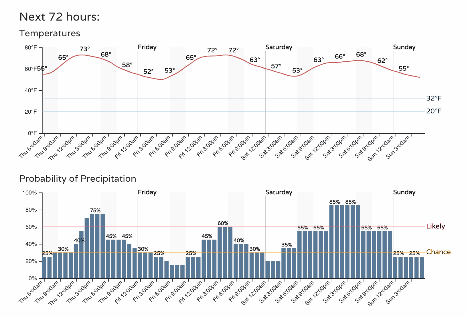 Temperatures will also be cooling throughout the period. Let's see how this gets rolling with the 3-day hourly planner for Denver.